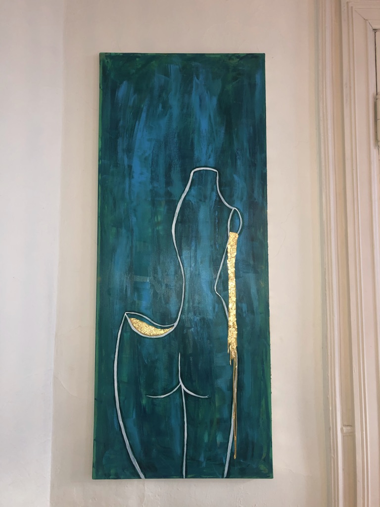 Acrylic and golden leaves on canvas